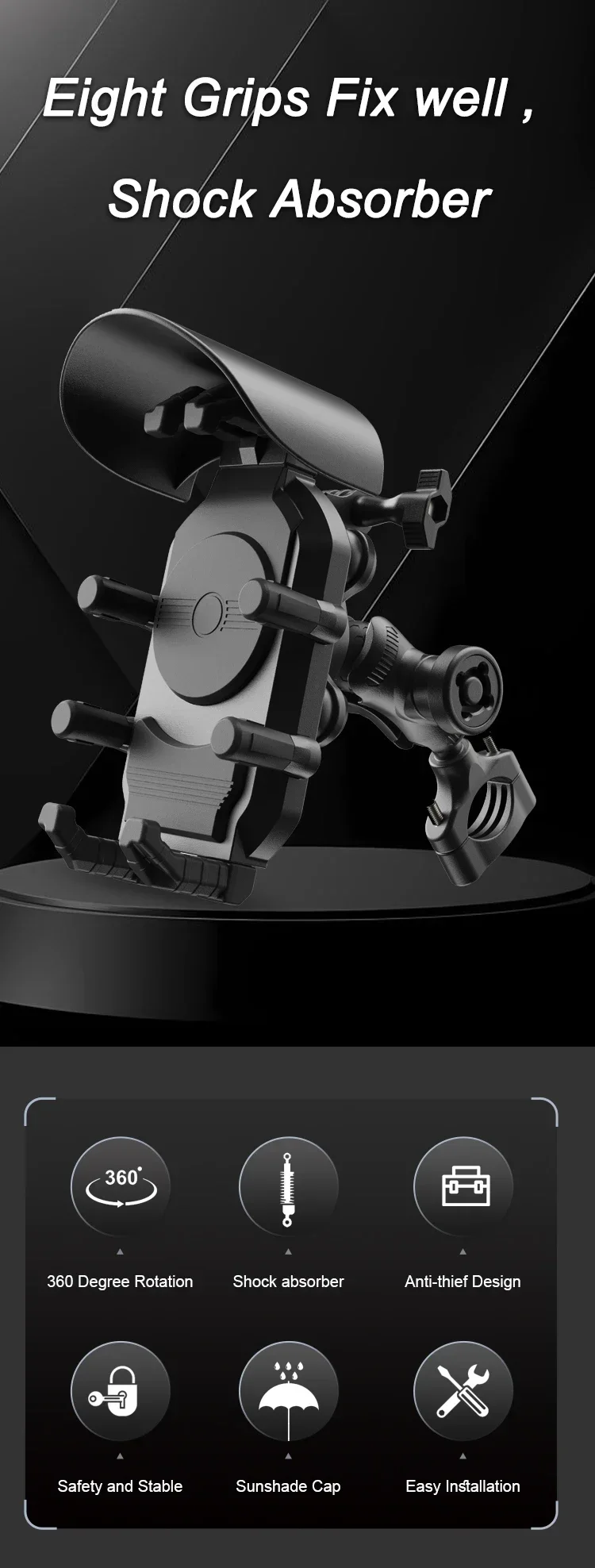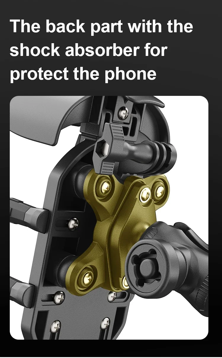 4. Enhanced Protection: The bike cellphone support includes thickened cushions that avoid the camera area and soft octopus-shaped silicone pads for effective shock absorption. Its mechanical locking design ensures stability even on bumpy roads, speed bumps, or during sudden braking.