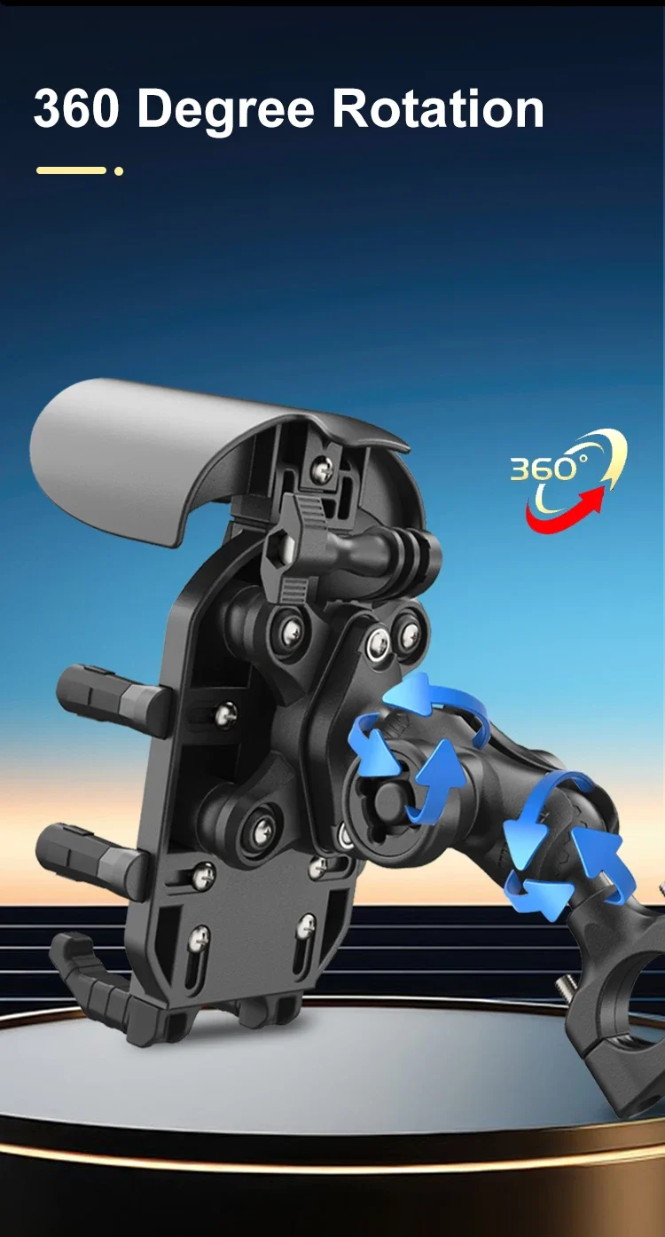 3. 360° Rotatable: The smartphone handlebar mount features a rotating ball design that allows 360° horizontal rotation, enabling you to position your phone at any angle with ease. Experience simple and quick adjustments on the go.