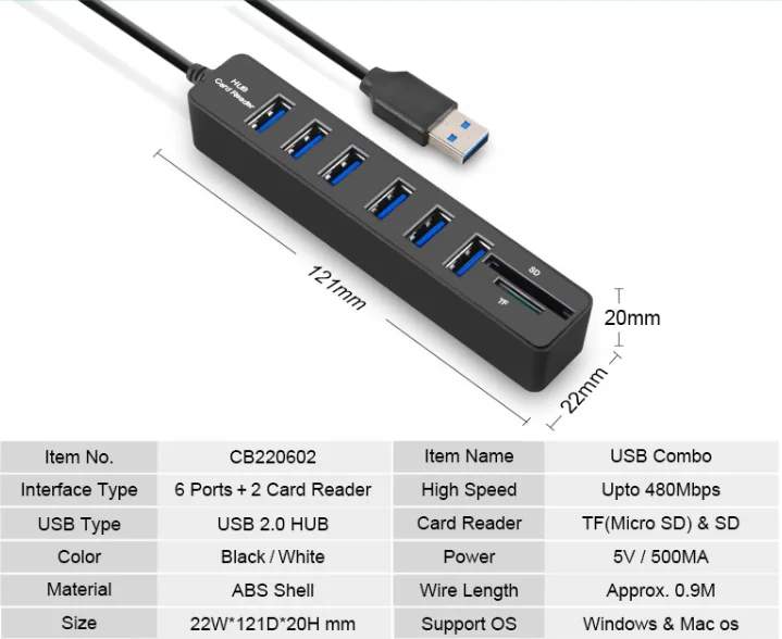 • 100% brand new and high quality USB 2.0/3.0 HUB with SD/TF card reader.
